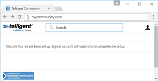 At this point, you should be able to browse to your community in your web browser. Navigate to it and open your community - this first access may take several minutes while it finishes the installation. Once completed, you should see a screen like the following.